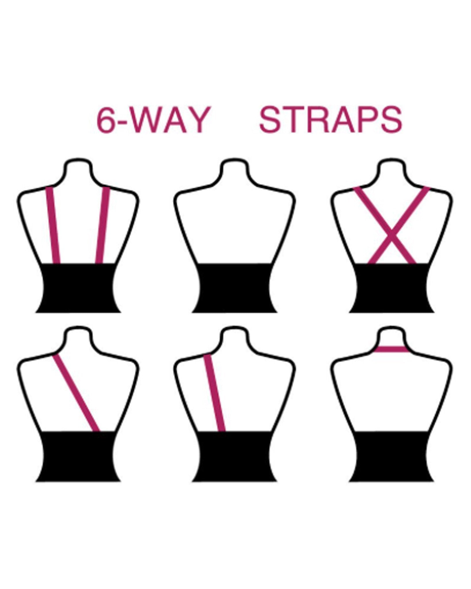 Detachable straps can be worn multiple ways: One shoulder, One shoulder cross, Halter neck, Standard two straps over the shoulders, Cross Back, Cross Front.